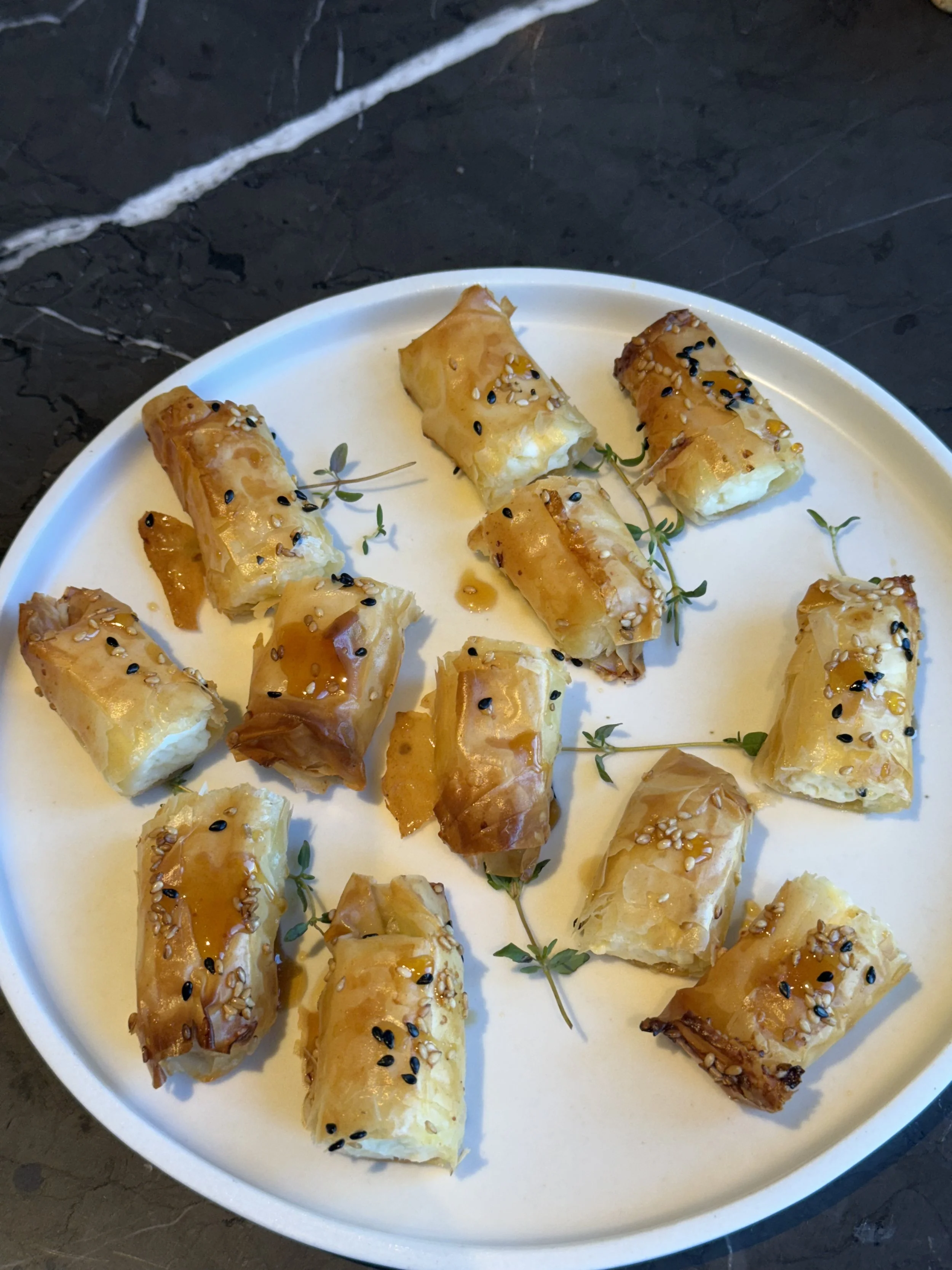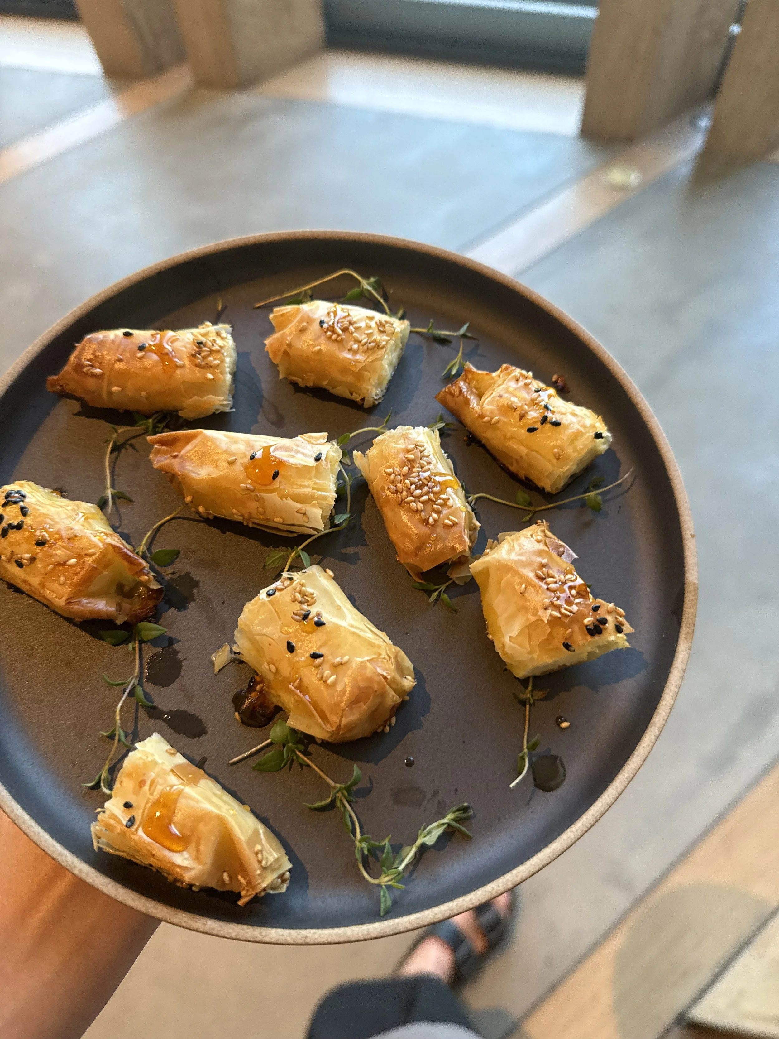 phyllo wrapped feta with hot honey