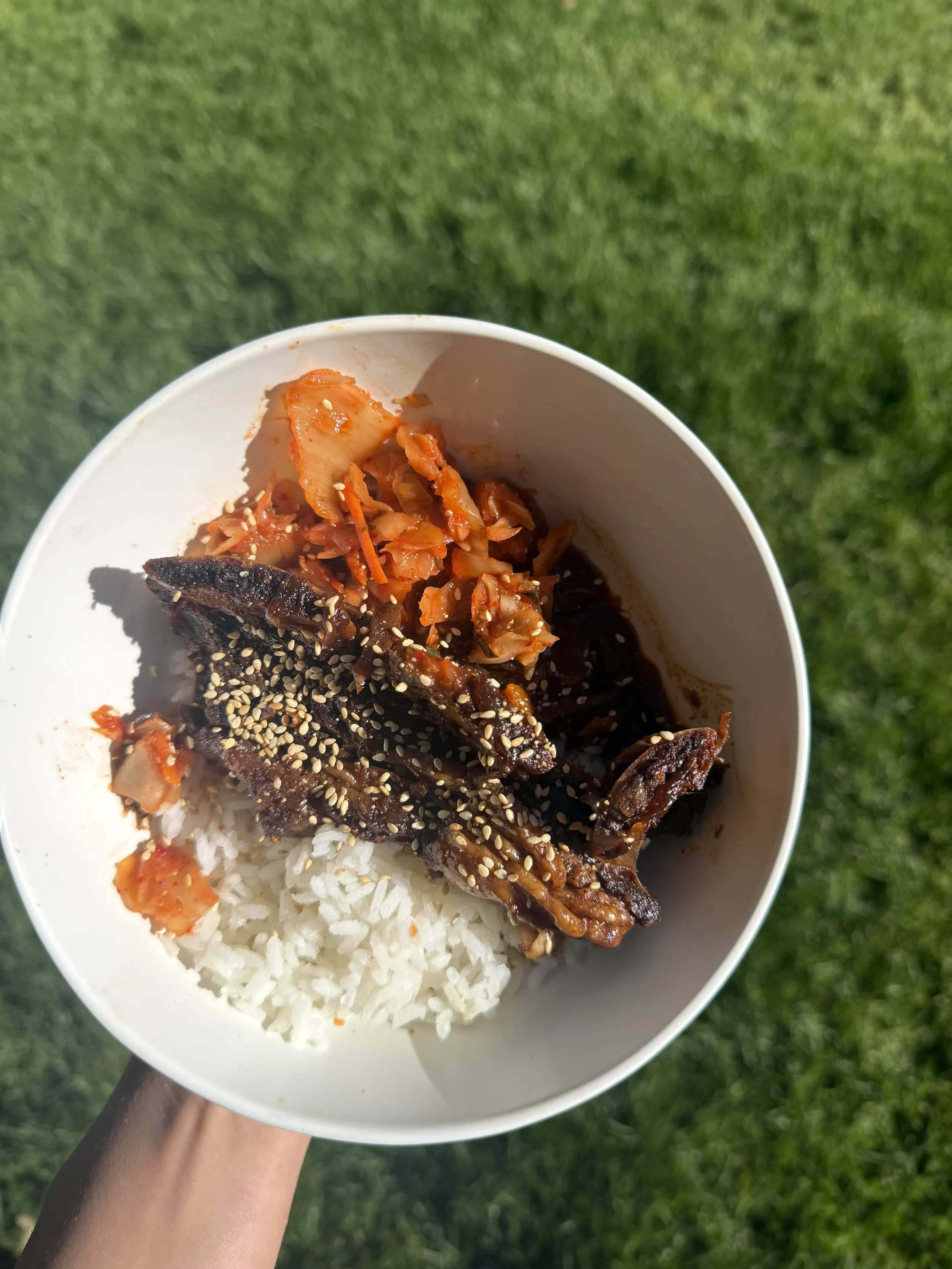 This recipe started off with me thinking I was going to make beef kalbi, thinly slices grilled marinated Korean short ribs, but when I opened my package of short ribs from Hyndman Beef and saw that they were thick cut had to change my game plan and the results ended up being even better than I had intended. This fall-off-the-bone recipe will surely delight. One thing I absolutely love about this recipe, besides how easy and hands off it is, is that I was able to make this entire recipe with ingredients I regularl have on hand (and you should too), making it an easy week night meal to make, especially in Idaho when its cold and snowing out and I don’t want to go to the store. It’s the perfect thing to make my clients when they want something comforting.